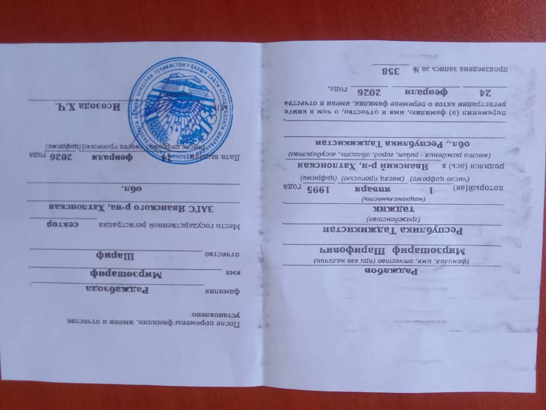 | Фамилия, имя, отчество соискателя | РАҶАБЗОДА Мирзошариф Шариф (РАДЖАБОВ Мирзошариф Шарифович) |